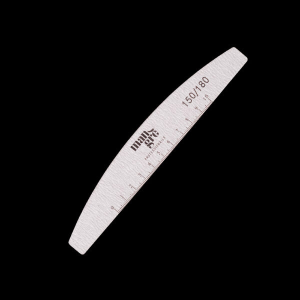 HALF MOON PRO RULER 150/180: Lima professionale pensata per chi cerca controllo, precisione e risultati impeccabili in ogni fase del lavoro tecnico. Grazie alla sua forma a mezzaluna e al doppio lato con grane 150/180, è perfetta per modellare strutture complesse, ridurre spessori in modo veloce ma controllato e rifinire con equilibrio anche le forme più tecniche.